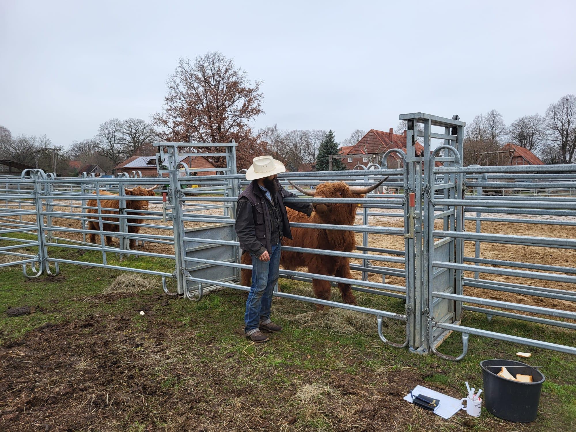 Ein kurzer Bericht über die Untersuchung eines jungen Highland-Bullen auf der Harmony Place Ranch am 17.12.2025. Gleichzeitig war es auch die Einweihung des neuen Treibegangs um den sicheren Umgang für Mensch und Tier zu gewährleisten.